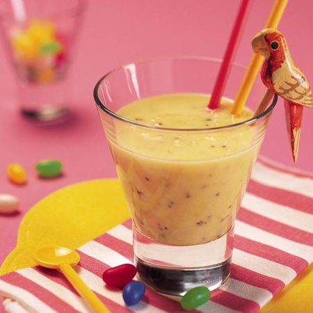 - Agregar el plátano, el jugo de naranja y los cubos de yogurt hasta que la mezcla sea uniforme.